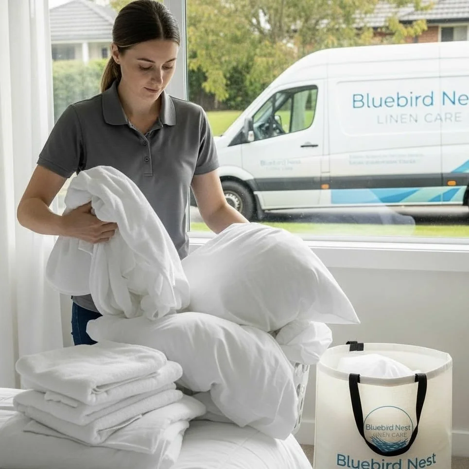 At Blue Bird Nest Linen Care, we believe that every piece of linen deserves the utmost care. With a commitment to quality and customer satisfaction, our professional team ensures your laundry is treated with the highest standards.